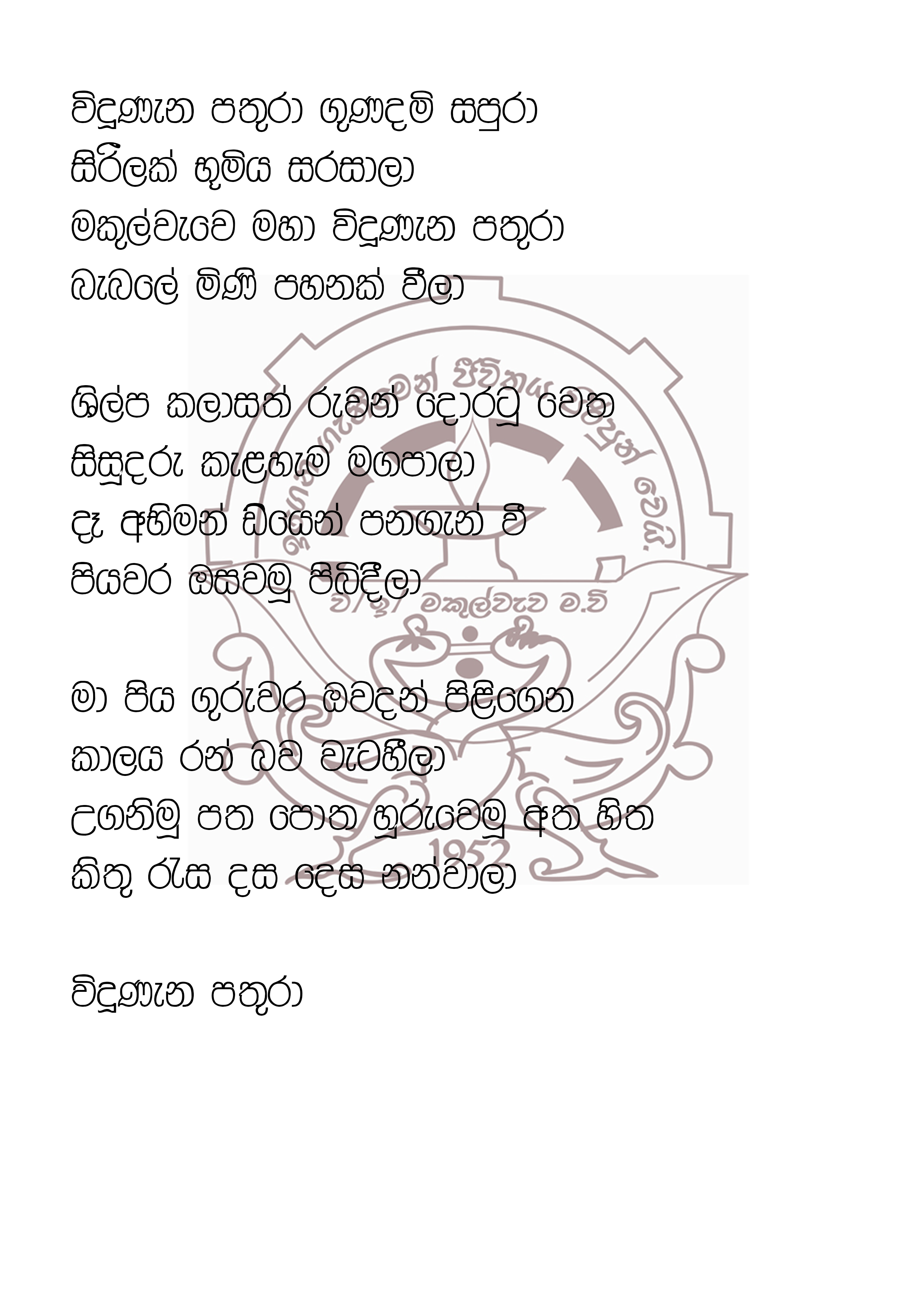 Lyrics - Mr.G.D Nihal Athukorala Melody - Mr. W.A.S Silva